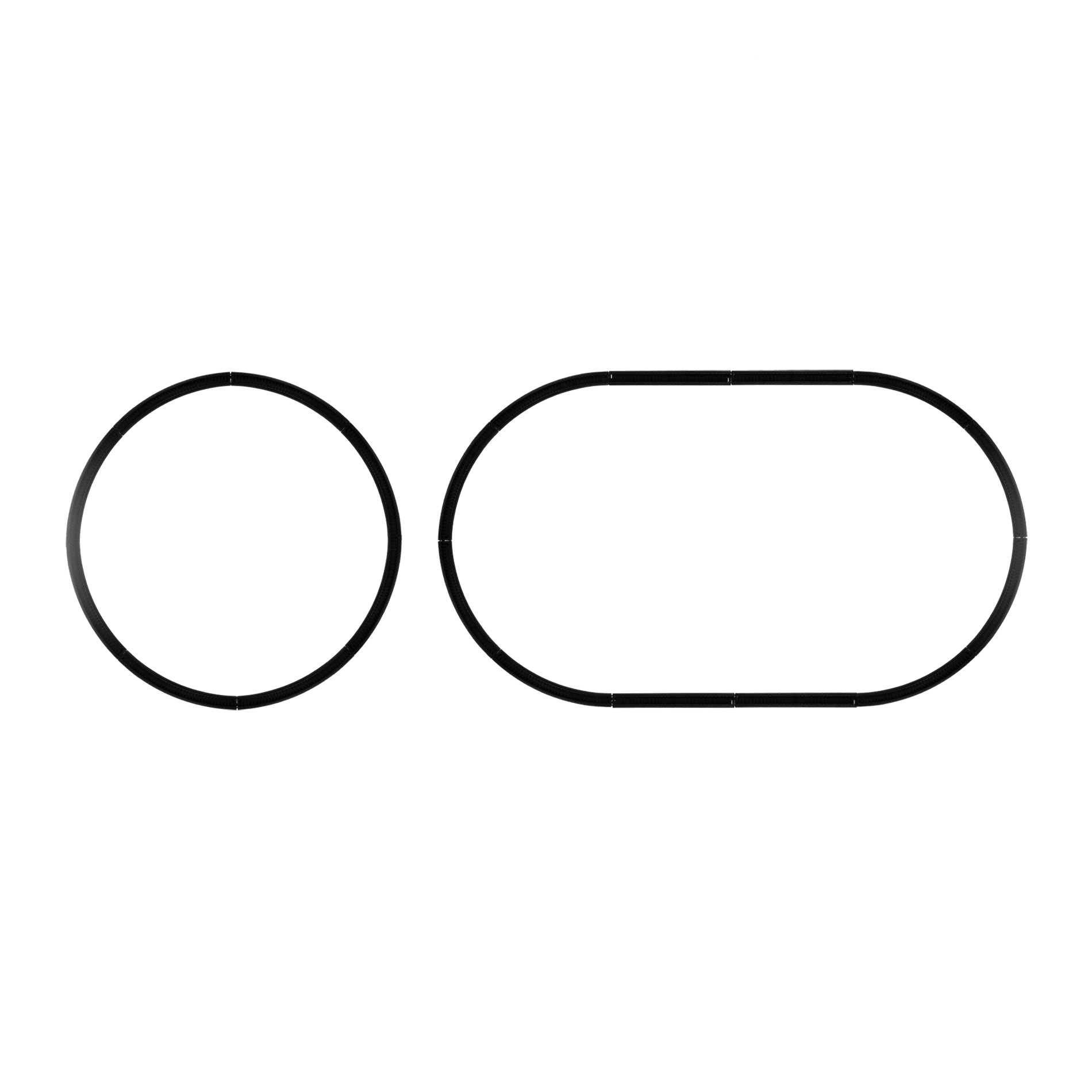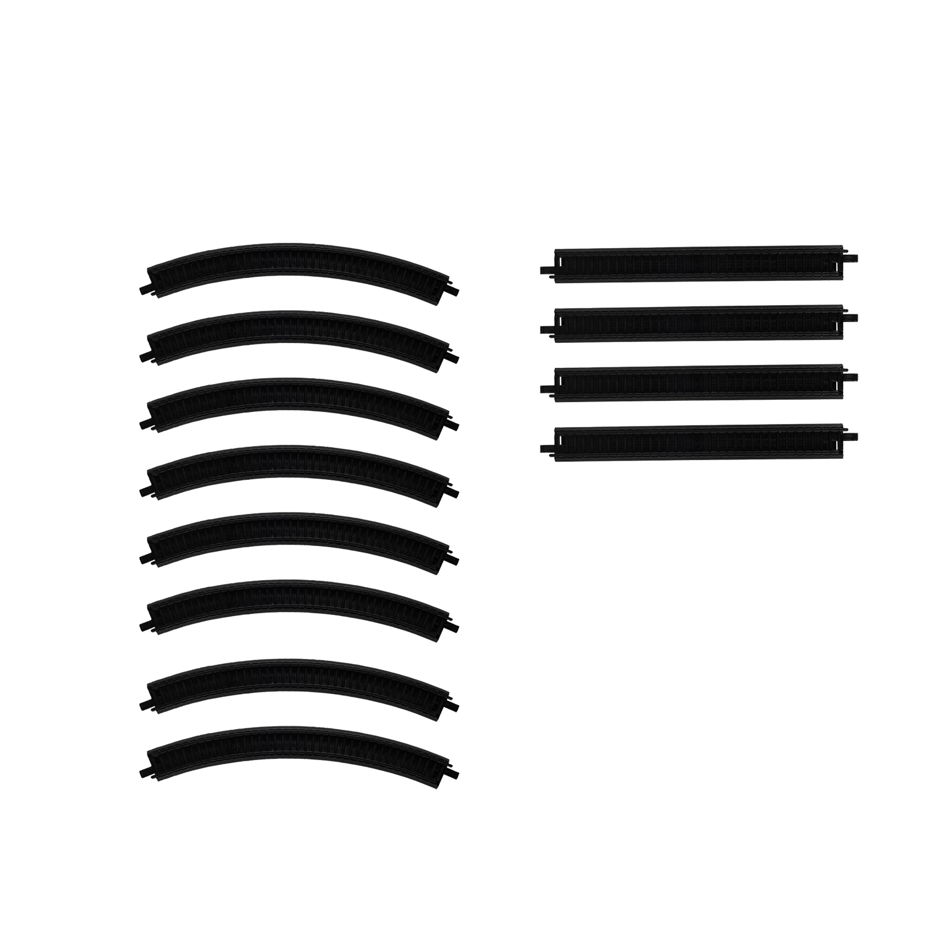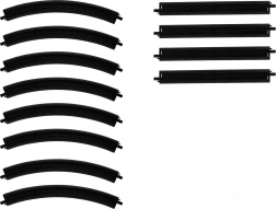 Set od 8 zavojitih i 4 ravne tračnice omogućuje lako sastavljanje ovalne pruge ili proširenje postojeće. Razmak tračnica 1,4 cm za stabilnu vožnju.