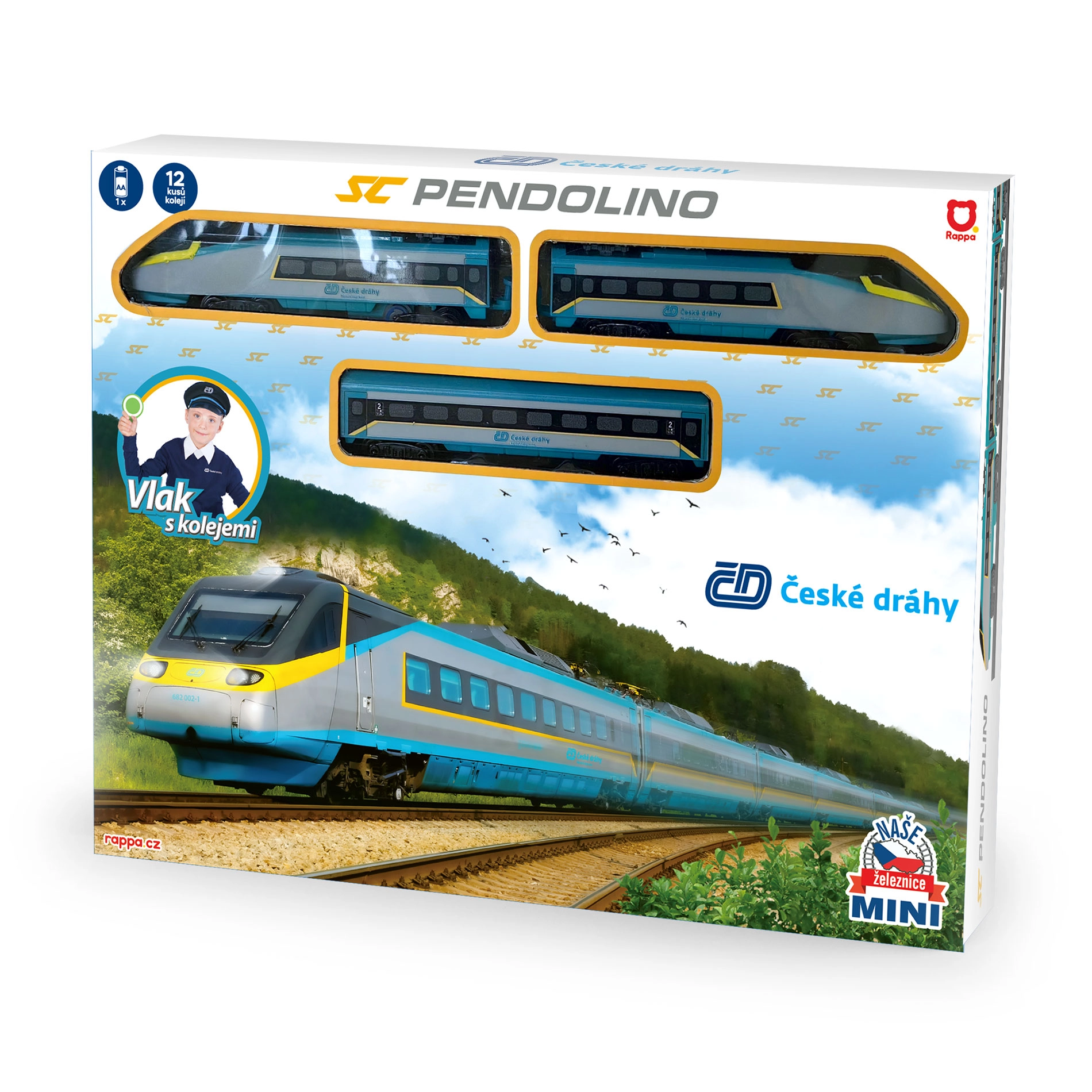 Pendolino MINI uključuje prednju i stražnju lokomotivu te središnji putnički vagon s detaljnom izradom za autentičan doživljaj vožnje.