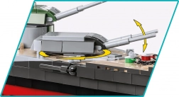 Zahvaljujući naprednim tehnikama slaganja i novim elementima, možete se veseliti pokretnim propelerima i kormilima, okretnim tornjevima te podiznim/spuštajućim cijevima topova. U paketu je i robusni crni stalak s otisnutom pločicom „Tirpitz”. Set ne zahtijeva lijepljenje ni bojanje – sve sastavljate isključivo od COBI kocaka koje su kompatibilne s drugim markama.