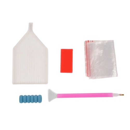 Paket sadrži platno s ljepilom, obojene kamenčiće u vrećicama, aplikator s držačem, vosak i posudicu za razvrstavanje – možete stvarati odmah.
