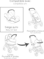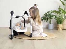 Praktičan set za lutke u izvedbi 3-u-1 koji služi kao autosjedalica, ljuljačka i visoka hranilica. Jednostavno se pretvara okretanjem konstrukcije, prikladan je za lutke do 42 cm i oduševljava modernim bež dizajnom.