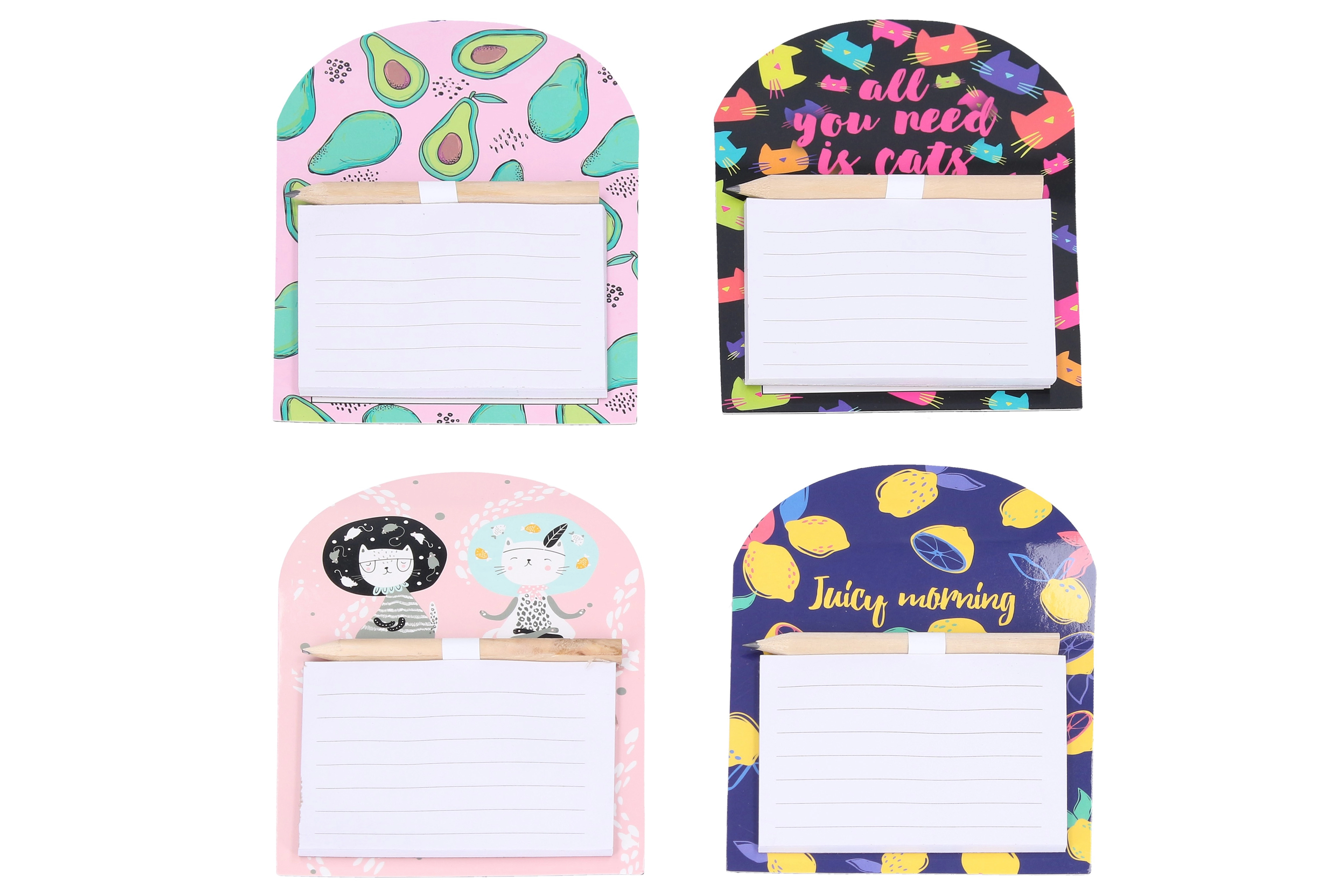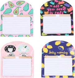 Zahvaljujući praktičnom držaču olovka je uvijek pri ruci, a snažan magnet sigurno drži cijeli set. Na izbor je miks atraktivnih dizajna (cvijeće, voće, životinje i drugi) koji će sjajno upotpuniti interijer.