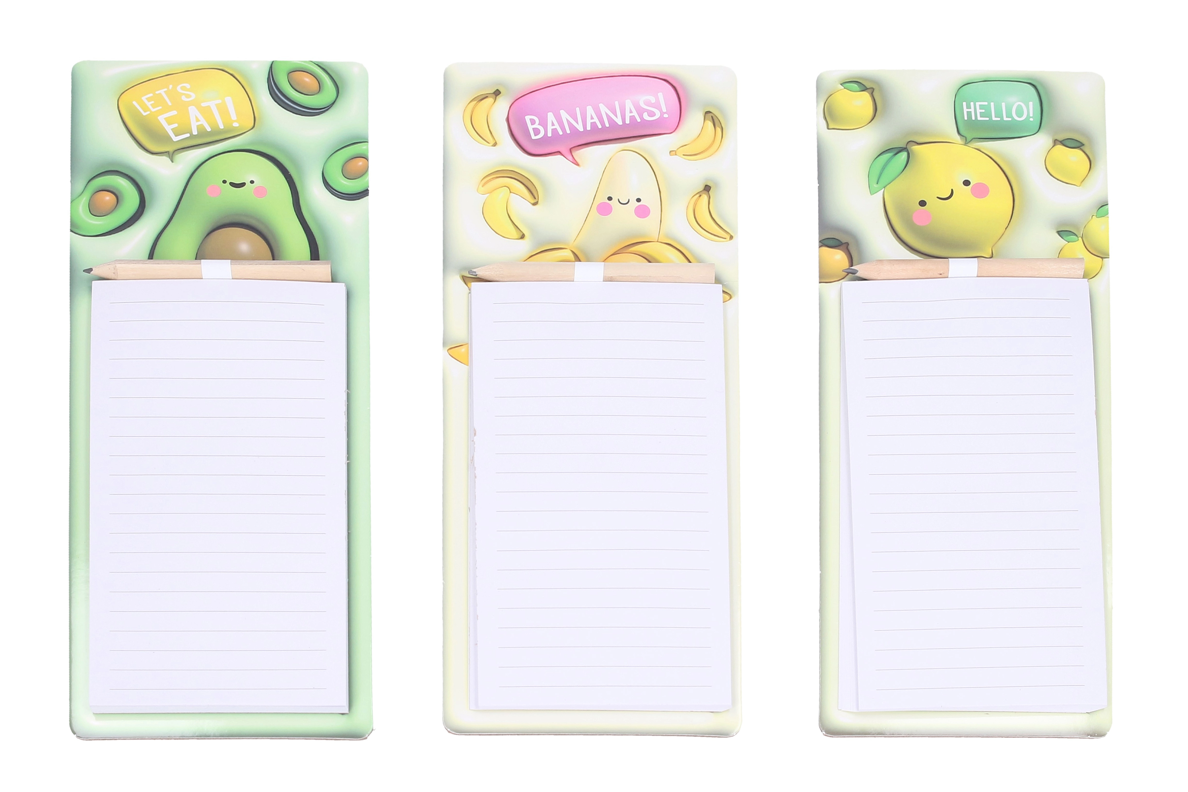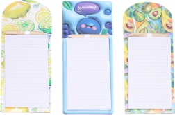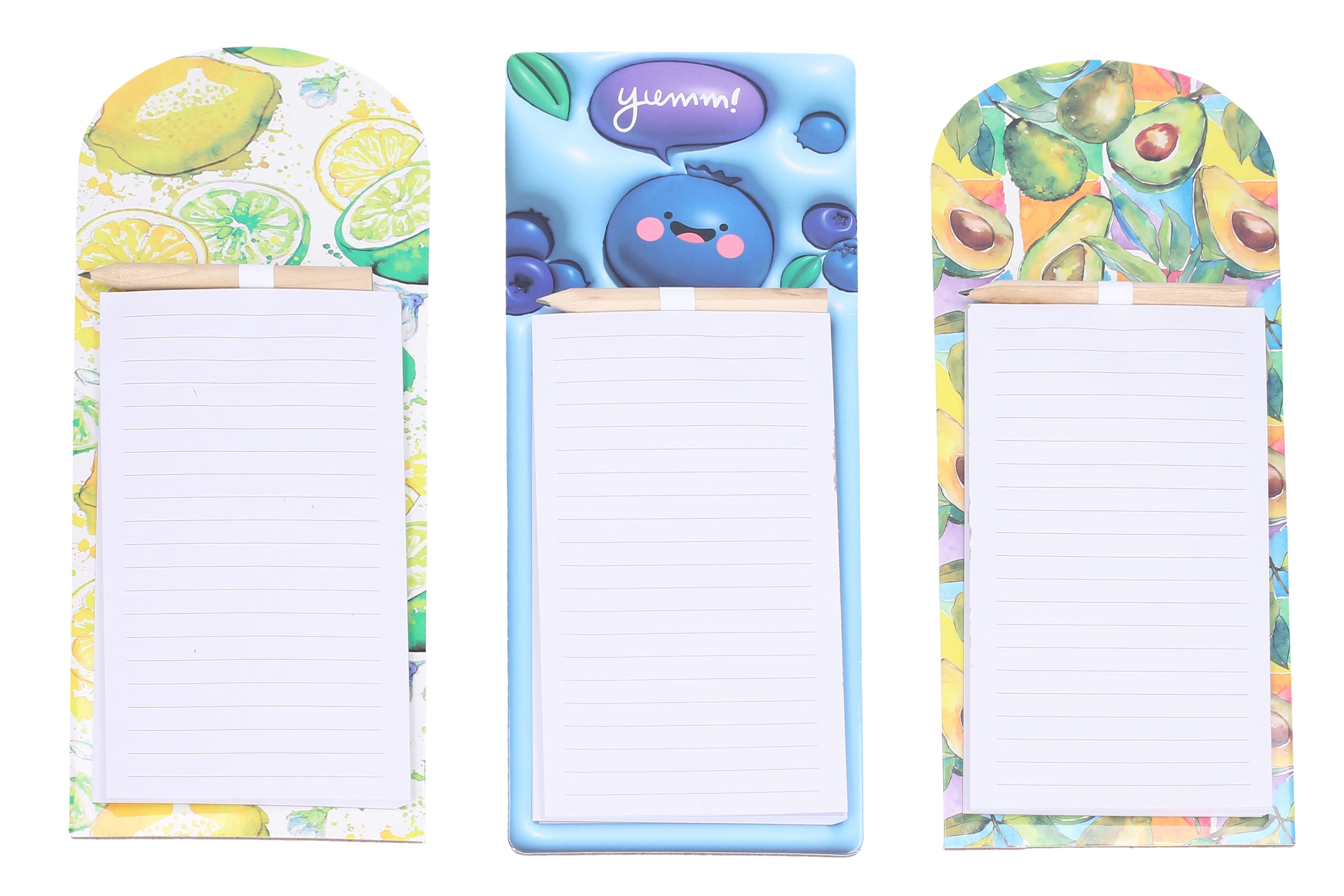 Uvedite red u kupnju i svakodnevne zadatke uz magnetske blokove s veselim voćnim motivima. Zahvaljujući snažnom magnetu lako ih pričvrstite na hladnjak ili druge metalne površine, pa su uvijek pri ruci. U kompletu je praktična olovka pričvršćena u gornjem dijelu kako biste mogli pisati kad god poželite, bez traženja.