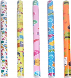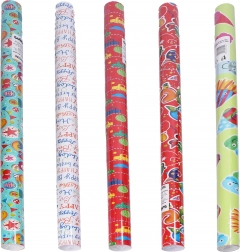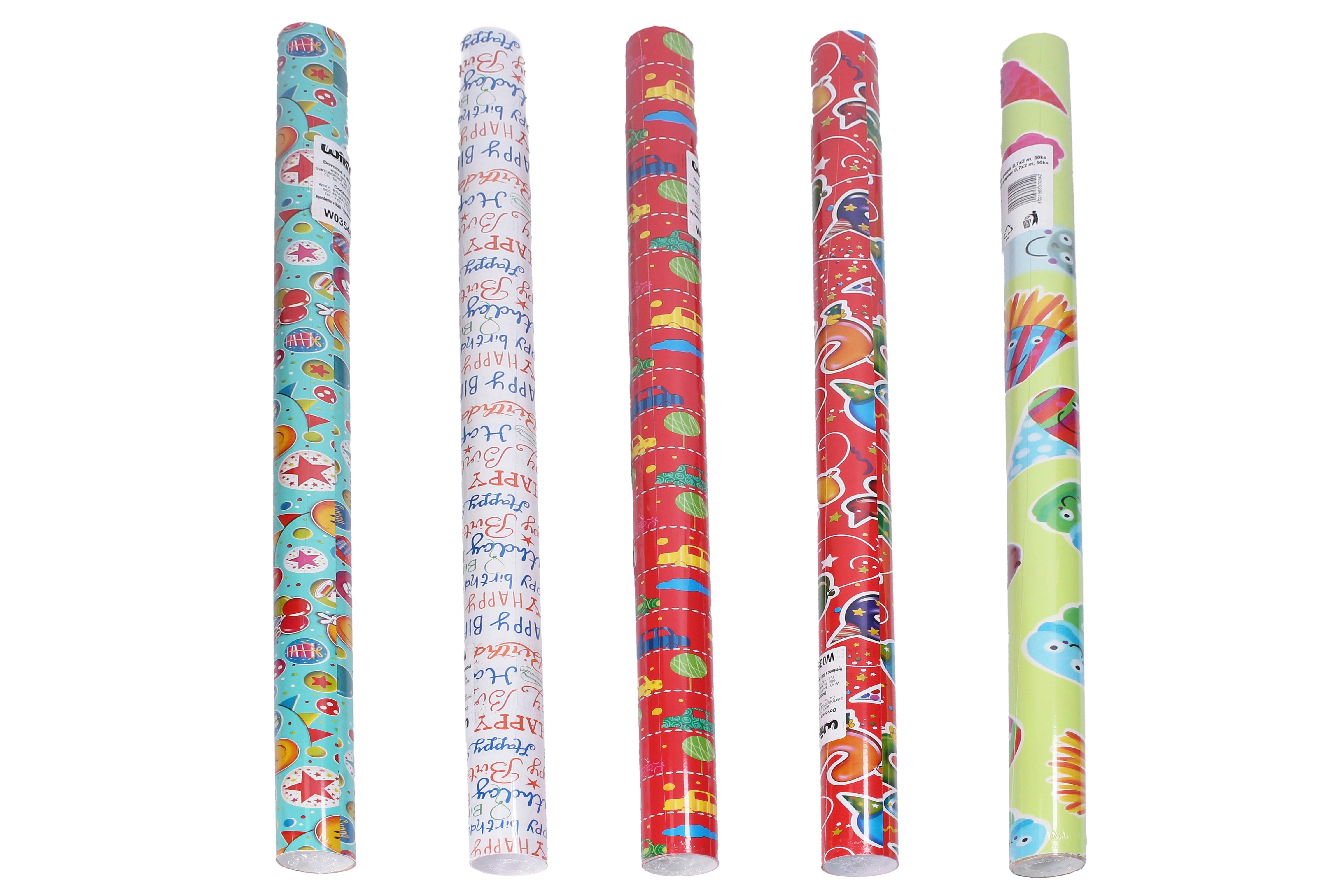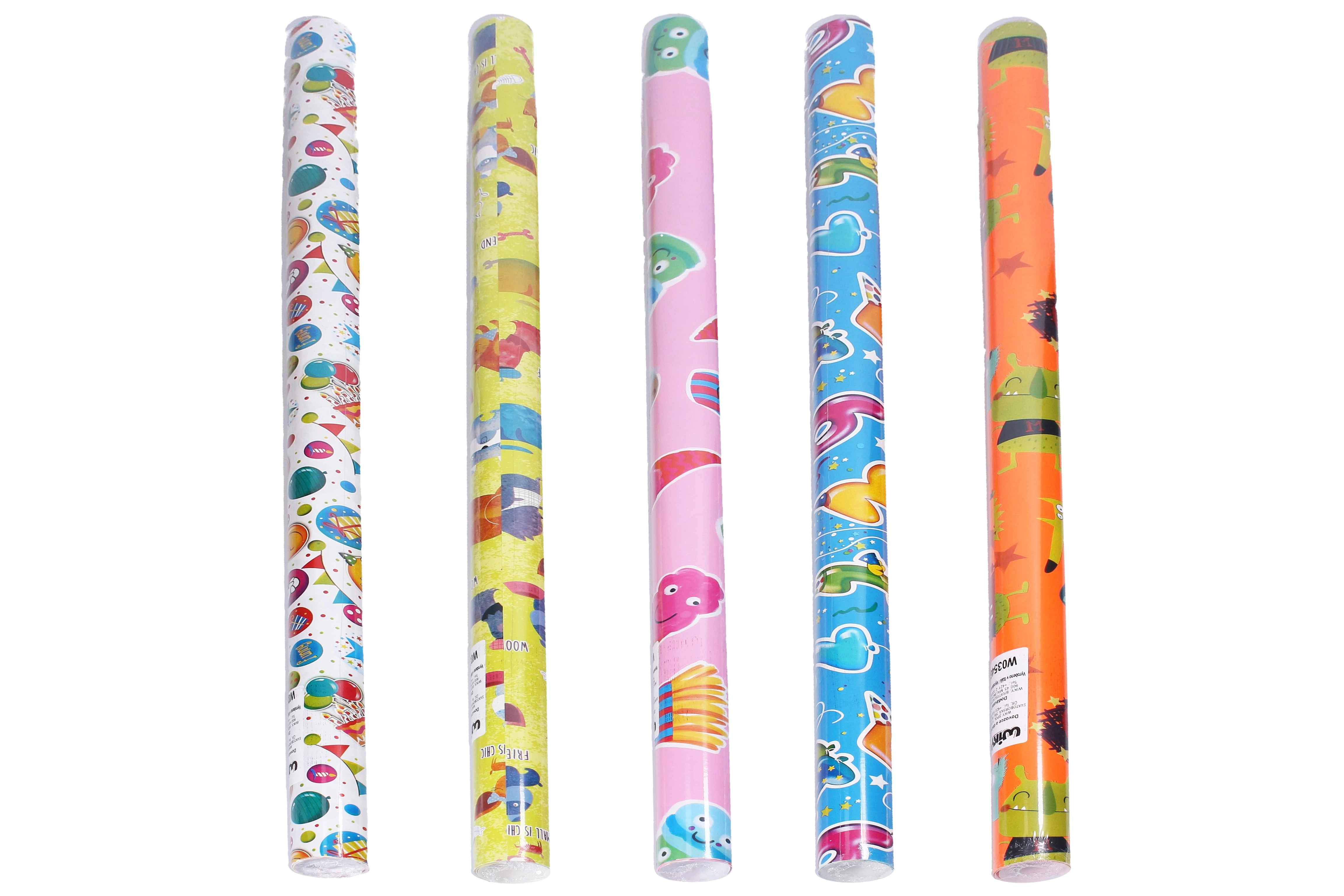 Veseli poklon papir s dječjim motivima u formatu 0,7 × 2 m idealan je za zamatanje rođendanskih darova i manjih iznenađenja. Nudi šarolik mix uzoraka, lako se reže i dobro zadržava oblik pri zamatanju.