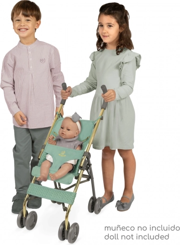 Stilna i praktična sklopiva kolica za lutke iz kolekcije CAPRICCIO u modernoj mentol zelenoj boji nude lako rukovanje, stabilnu metalnu konstrukciju i trodijelni sigurnosni pojas za sigurno pričvršćivanje lutke. Zahvaljujući kompaktnim dimenzijama idealna su za putovanja i za interijer.