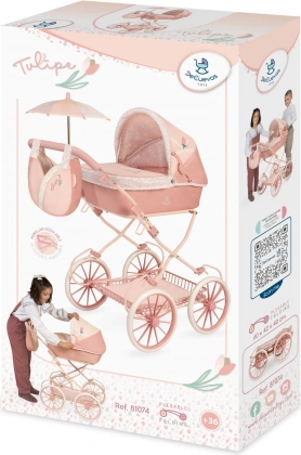 Dio seta je i stilska torba u obliku tulipana, sklopivi suncobran i mekani madrac za lutku. Tu su i odlagni džep na tendi, pokrov košare s drukerima i prostrana košara ispod vozila. Veliki žbičani kotači i opruge omogućuju glatko ljuljanje i stabilnu vožnju.