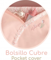 - Odvojiva torba u obliku tulipana, pokrivalo košare s ušicama i džepića, džep na krošnji s tulipanom i zvončićem, madrac, donja spremišna košara