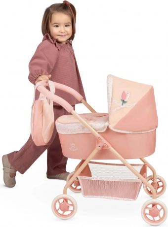 Zahvaljujući laganoj i stabilnoj konstrukciji od metala i plastike, kolicima se lako upravlja i najmlađoj djeci. Ne nedostaju madrac, spremišna košara i džep na krošnji s tekstilnim tulipanom i zvončićem za još veće veselje u igri.