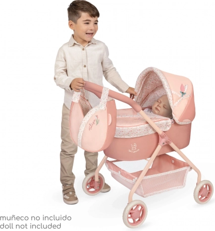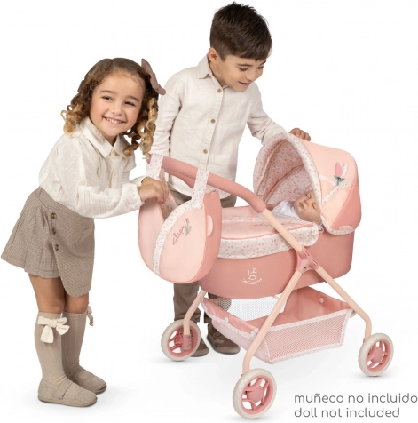 Očaravajuća kolica za lutke iz kolekcije Tulipe spajaju prekrasan španjolski dizajn i praktičnost za svakodnevnu igru. Nježne losos pastelne boje s cvjetnim uzorkom i tematska torba u obliku tulipana čine ih sjajnim darom za djecu od 3 godine.