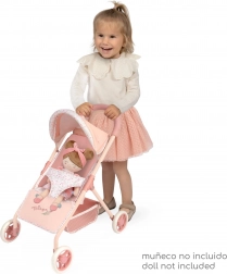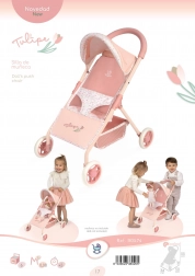 Elegantna sportska kolica za lutke iz kolekcije Tulipe oduševljavaju svojim španjolskim dizajnom, preciznom izradom i lakim rukovanjem. Laka konstrukcija s trodijelnim sigurnosnim pojasom, praktičnim spremnikom/košarom i visinom ručke 55 cm idealna je za manju djecu. Stilski cvjetni motiv u toplim pastelnim tonovima upotpunit će svaku dječju igru.