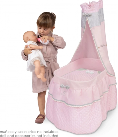 Očaravajući pokretni krevetić za lutke iz kolekcije Sophie razveselit će svaku malu njegovateljicu. Nudi baldahin s nježnom čipkom, poplun s mašnicom i 4 okretna kotačića za glatko kretanje u svim smjerovima. Lakoća konstrukcije s naglaskom na preciznu izradu i španjolski dizajn idealna je za dječju igru od 3 godine.