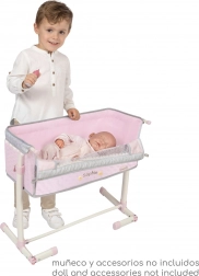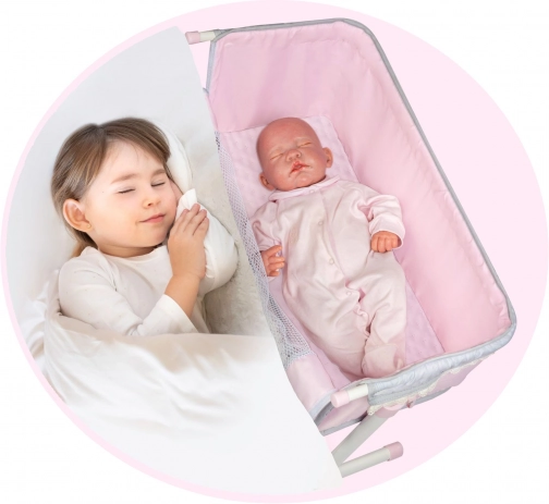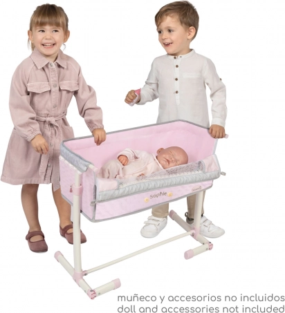 Elegantna novorođenačka kolijevka za lutke iz serije SOPHIE oduševljava nježnim dizajnom i praktičnom funkcijom zajedničkog spavanja. Zahvaljujući preklopnoj bočnoj stranici, podesivim nogama i visinski prilagodljivom ležaju lako ju je prisloniti uz dječji krevet. Jednostavno rukovanje, kvalitetna izrada i nježno ružičasto izvedenje sa sivim i bijelim detaljima stvaraju čarobno mjesto za svaku lutku.