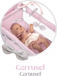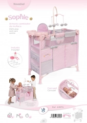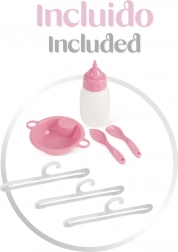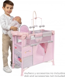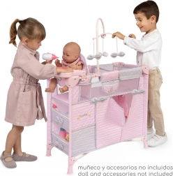 Dio kompleta je bogata oprema za realističnu brigu o lutkama: vrteška s mašnicama, mali stol za previjanje, hranilica s plastičnim setom, prostrani ormar na patentni zatvarač s vješalicama i dvije odlagalne police. Krevetić ima mrežasti prozorčić za bolji nadzor i ventilaciju.