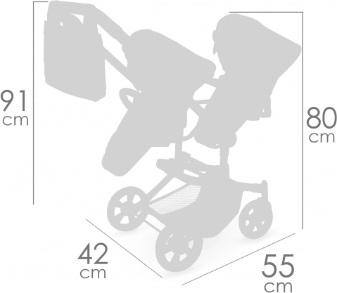 Košare se mogu zakvačiti u smjeru ili suprotno od smjera vožnje te se lako izvaditi za prenošenje lutki. Pogodno za lutke do 52 cm.