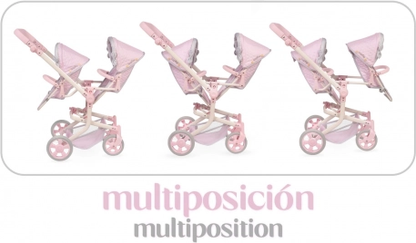 Igra i praktičnost u jednom – ova sklopiva kolica za lutke osmišljena su za udobnu vožnju dvije lutke odjednom. Zahvaljujući podesivim i odvojivim košarama, lutke se mogu smjestiti u smjeru ili suprotno od smjera vožnje. Lagani metalno-plastični okvir, mekane tkanine i nježan, romantičan izgled kolekcije SOPHIE čine ih sjajnim dodatkom dječjoj sobi.