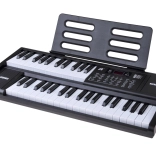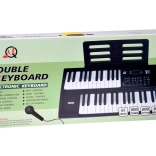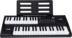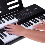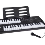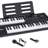 Dio pakiranja su mikrofon i stalak za note. Tipke su kompaktne, s ugrađenim zvučnicima i jednostavnim upravljanjem – idealne za kućno muziciranje, vježbanje pratnje i prve autorske skladbe.