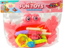 Ružičasti stolić u obliku simpatičnog raka nudi djeci zabavan ribolov s vodom ili bez nje. Zahvaljujući bogatoj opremi mali ribolovci mogu kroz igru razvijati koordinaciju oko–ruka i natjecati se tko će uloviti više ribica. Set je izrađen od kvalitetne plastike koja je izdržljiva i sigurna za svakodnevnu igru.