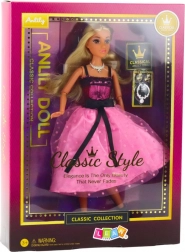 Elegantna lutka ANLILY u ružičasto‑crnoj balskoj haljini razveselit će svaku malu ljubiteljicu mode. Ima dugu plavu kosu za kreiranje frizura, pokretne udove za realističnu igru i bogate dodatke – ogrlice, naušnice i crne cipele. Idealna za kreativnu igru i stilske priče.