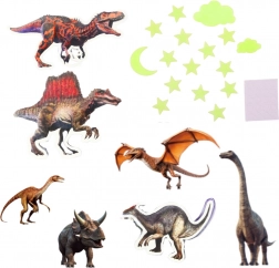 Naljepnice su izrađene od sigurnih, netoksičnih materijala koji ispunjavaju europske standarde. Odlične su kao kreativna dekoracija i kao pomoć pri uspavljivanju. Kombinacija šarenih dinosaura i svjetlećih elemenata stvara privlačnu i zabavnu kompoziciju.