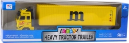 Realističan žuti kamionski set s kontejnerom oduševit će male i velike ljubitelje prometa. Ima metalnu kabinu za veću izdržljivost, otvorivi kontejner za prijevoz sitnica i zabavni pull-back pogon zahvaljujući kojem se nakon povlačenja sam pokreće.