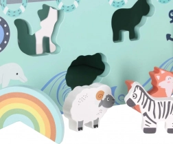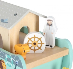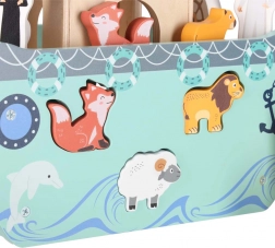 Životinje se umeću u precizno oblikovane otvore na boku broda. Djeca tako vježbaju prepoznavanje oblika, strpljenje i finu motoriku na prirodan i zabavan način.