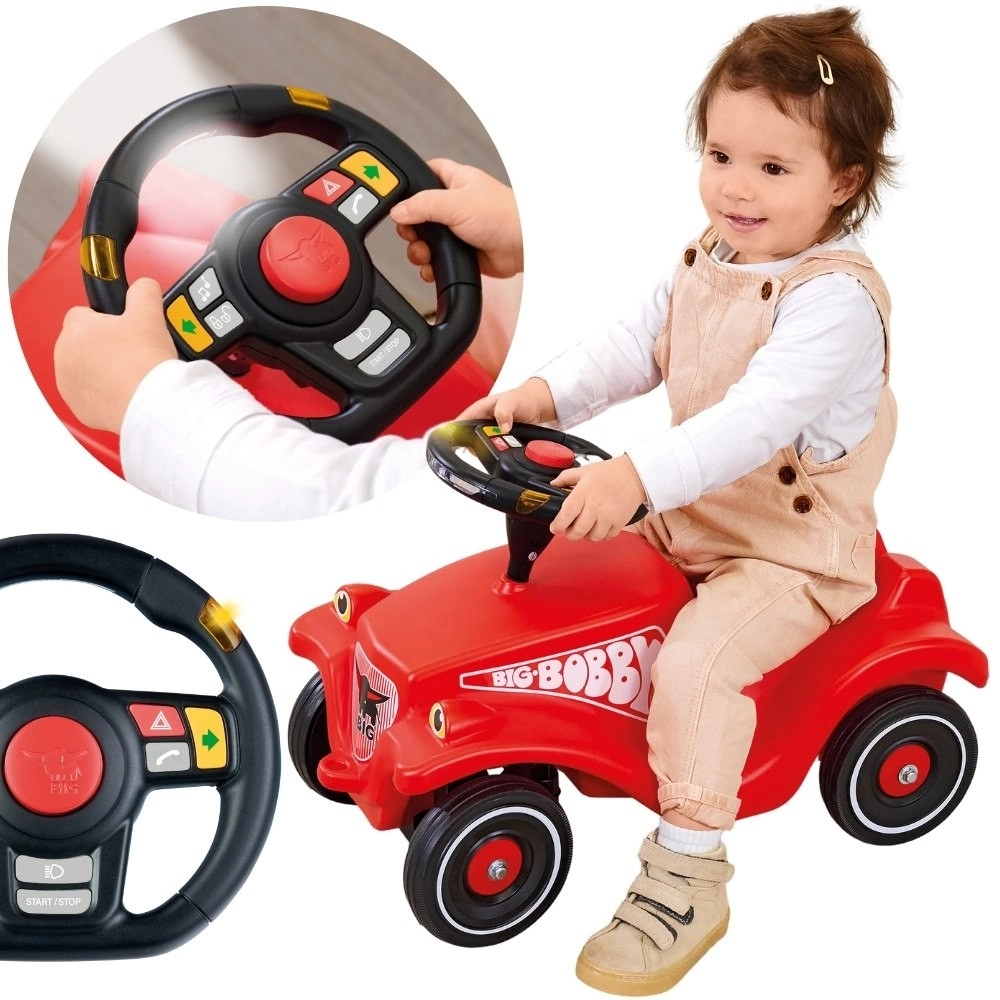 Multifunkcionalni volan BIG pretvara svaku vožnju na guralici u pravo avanturističko iskustvo. Djeca će uživati u LED žmigavcima, trubi, zvuku pokretanja, radiju i drugim realističnim efektima. Zahvaljujući vodootpornom dizajnu, idealan je i za igru na otvorenom.