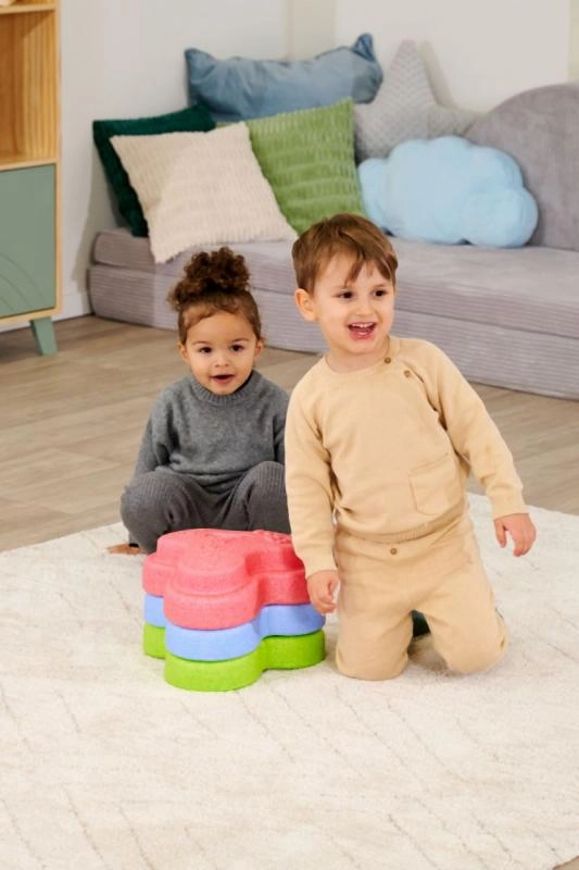 Raznolike teksture potiču senzornu percepciju, sigurniji oslonac i zabavno učenje ravnoteže. Djecu privlače novi koraci i kombinacije.