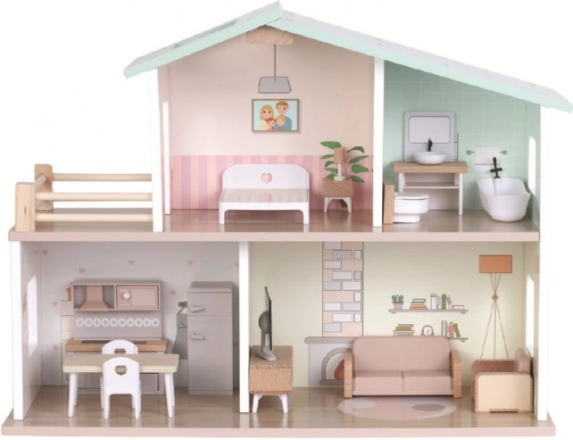 Kućica za lutke Anička unosi u dječju igru toplinu i mnoštvo priča. U njoj ćete pronaći kuhinju, ugodan dnevni boravak, stilsku kupaonicu s kadom, spavaću sobu i terasu za trenutke odmora. Zahvaljujući nježnim bojama i pažljivoj izradi, lijepo će se uklopiti u svaku dječju sobu.