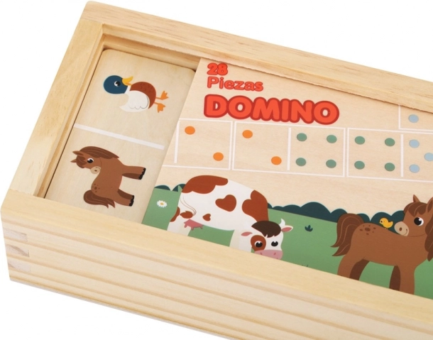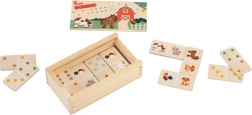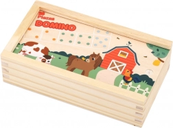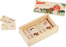 Otkrijte čaroliju obostranog drvenog domina s farme koje nudi dva načina zabave u jednoj igri. Mlađa djeca slažu prema veselim slikama životinja, starija se igraju klasično domino s točkama i nenametljivo vježbaju računanje i logiku. Kvalitetno prirodno drvo, ugodne pastelne boje i praktična drvena kutija s poklopcem čine ga prekrasnom i izdržljivom igračkom za djecu od 2 godine.
