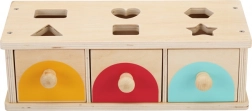Pametna drvena igračka za najmlađe koja spaja zabavu i učenje. Djeca ubacuju obojene oblike u odgovarajuće otvore, a gotovi dijelovi klize u tri različito obojene ladice. Trenutna povratna informacija razvija razumijevanje uzroka i posljedice, logičko razmišljanje, koordinaciju ruka–oko i finu motoriku.