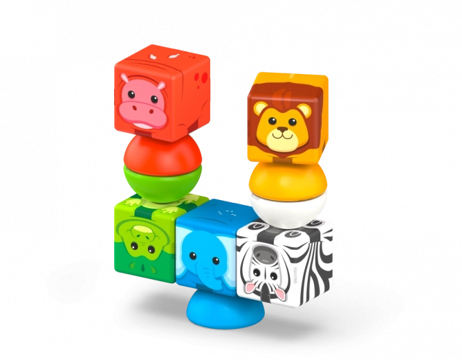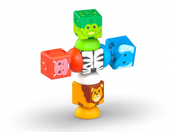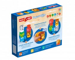 Set sadrži 5 magnetskih kockica s motivima safari životinja i 5 šarenih magnetskih polukugli. Dijelovi su robusni, ugodni za držanje i dizajnirani za sigurnu igru već od 2 godine. Građevna igračka u potpunosti je kompatibilna s ostalim setovima linije Magicube, pa svijet mašte može stalno rasti.