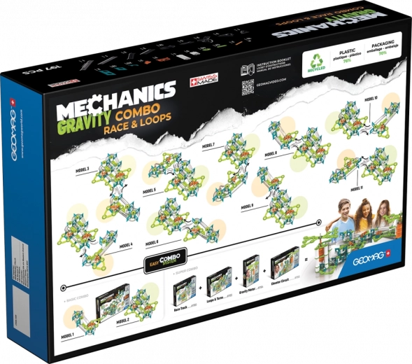 GEOMAG Mechanics Gravity Combo je pametna kuglična staza u kojoj glavnu ulogu imaju gravitacija i magnetizam. Sastavite raznolike rute, pratite kretanje čeličnih kuglica i eksperimentirajte s prijenosima, okidačima i usmjeravanjem toka kuglica. Svaka pregradnja donosi nove izazove i radost otkrivanja.