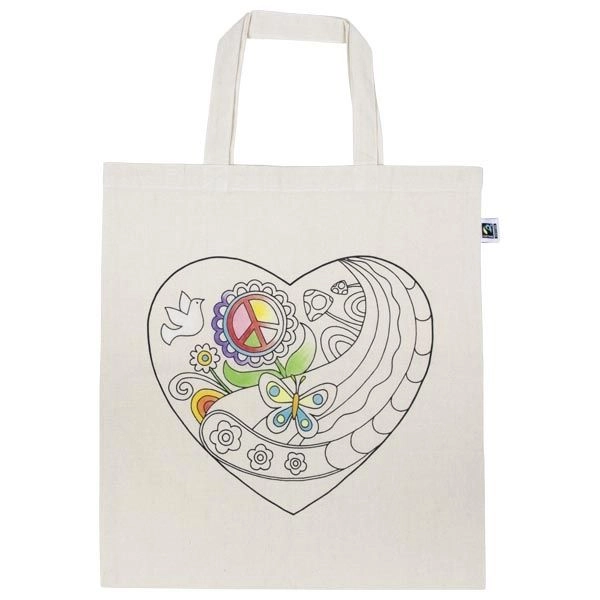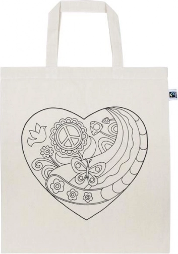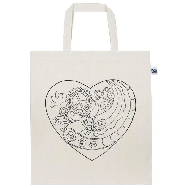 Kreativna pamučna torba s motivom srca za djecu i odrasle. Idealna za bojanje flomasterima ili bojama za tekstil. Poticanje mašte, višekratna upotreba i prijateljska prema prirodi. Ručno pranje na 30 °C za dugotrajnost motiva. Prikladno od 3 godine.
