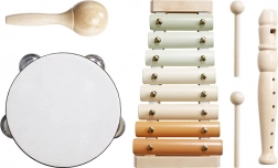 Tamburin, rumba kugla, flauta i ksilofon s palicama pružit će djeci širok spektar zvukova i mogućnosti igre.