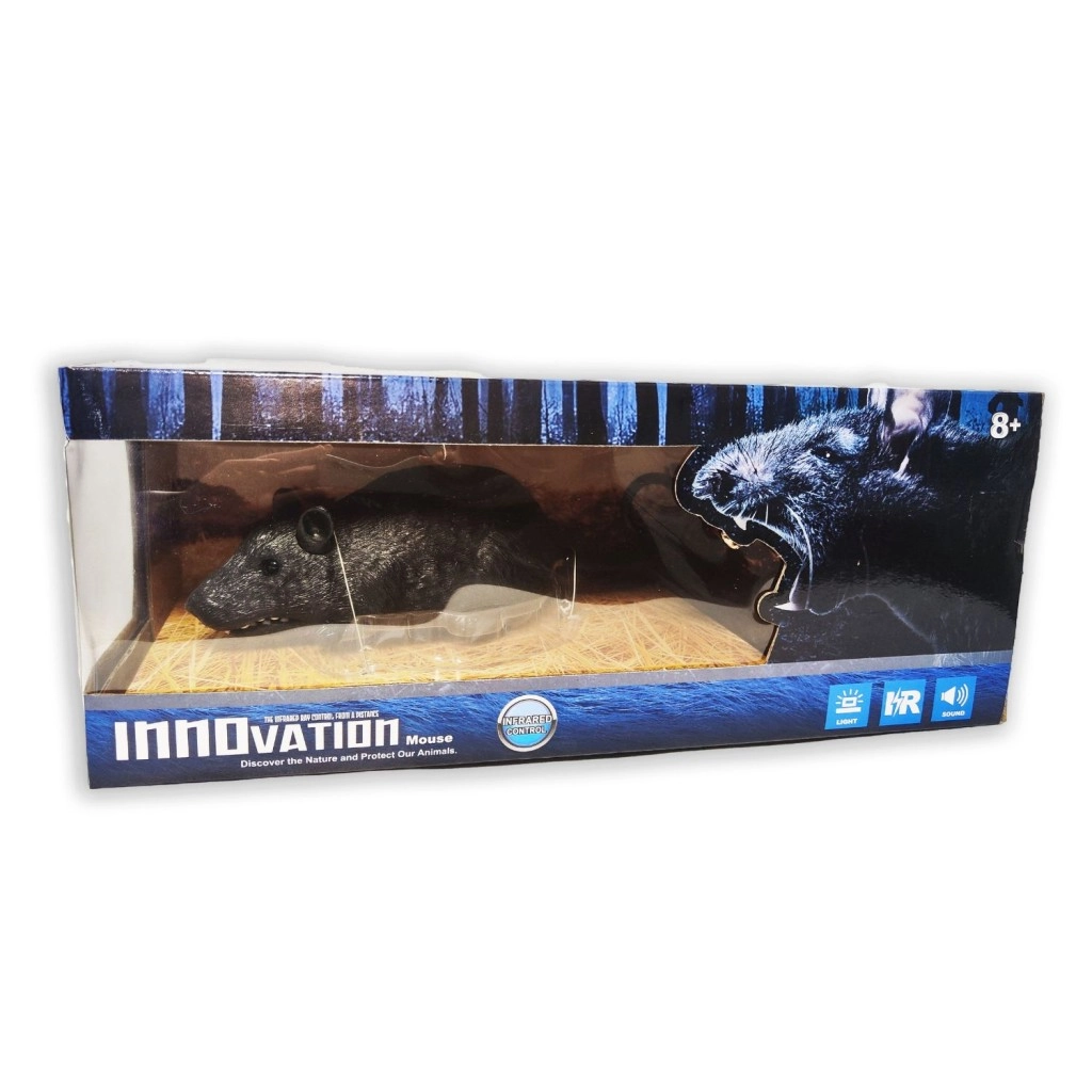 Realistično izrađen RC štakor na infracrveno upravljanje donosi puno zabave kod kuće i na zabavama. Zahvaljujući svjetlećim očima i pokretnoj čeljusti djeluje živo i učinkovito privlači pozornost. Upravljanje je intuitivno – možete pokrenuti demo način ili štakora upravljati ručno i pustiti ga da juri naprijed.