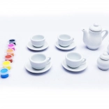 Otkrijte zabavan način stvaranja s ovim kreativnim setom za oslikavanje čajnog servisa. Set sadrži sve potrebno: 6 boja, kist, 4 šalice s tanjurićima, čajnik i šećernicu. Idealno za razvoj kreativnosti, fine motorike i kao originalan poklon.