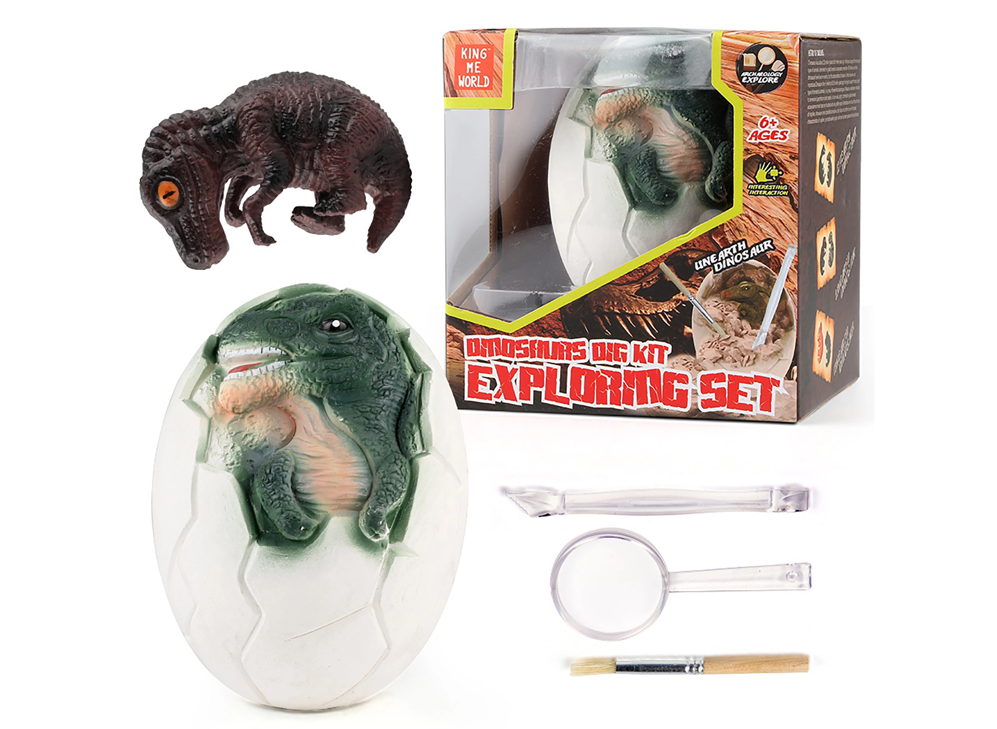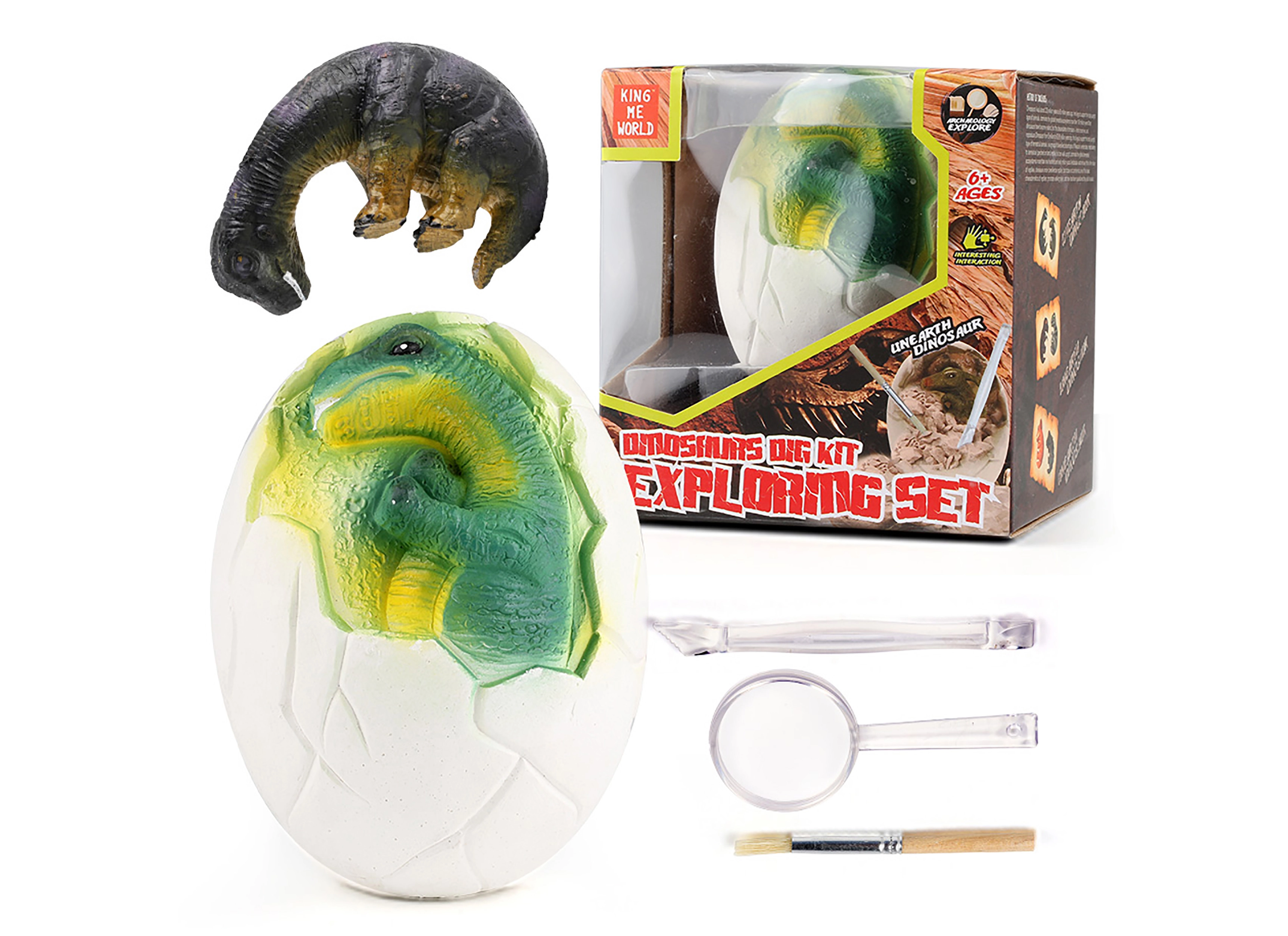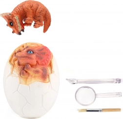 Ovaj arheološki set pretvara svako dijete u malog paleontologa. U čvrstom gipsanom jajetu skriven je šareni dinosaur kojeg djeca postupno otkrivaju pomoću priloženih alata. Iskopavanje je sigurno i zabavno, idealno kao poklon i kreativna aktivnost kod kuće.