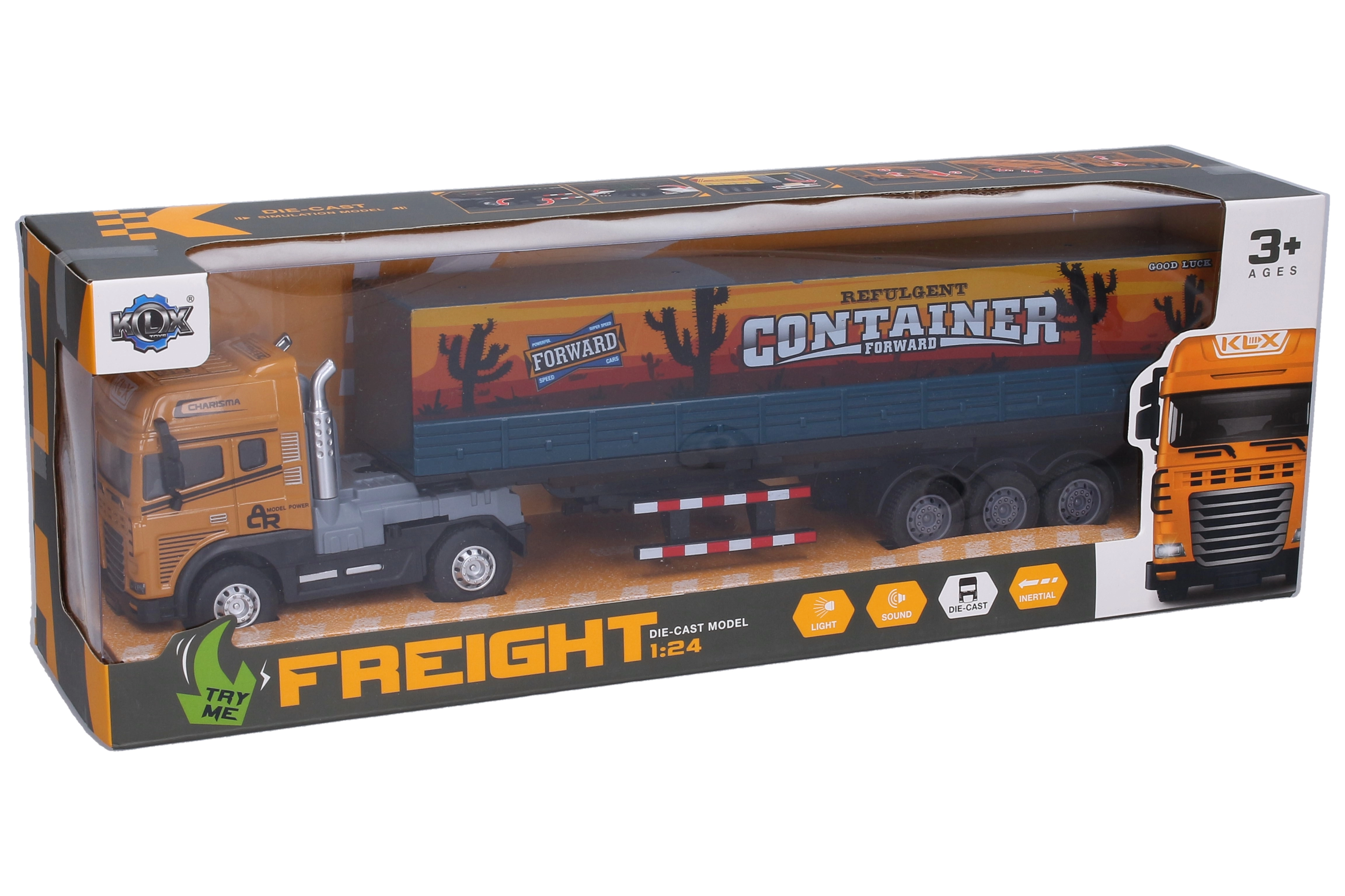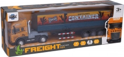 Realističan metalni tegljač s odvojivom poluprikolicom s kontejnerom razveselit će male i velike vozače. Nudi svjetlosne i zvučne efekte, inercijski mehanizam za glatku vožnju, otvarajuća vrata kontejnera te aktivaciju efekata pokretom prednjih kotača. Duljina modela je 40 cm, baterije 3× AG13 uključene su u pakiranje.