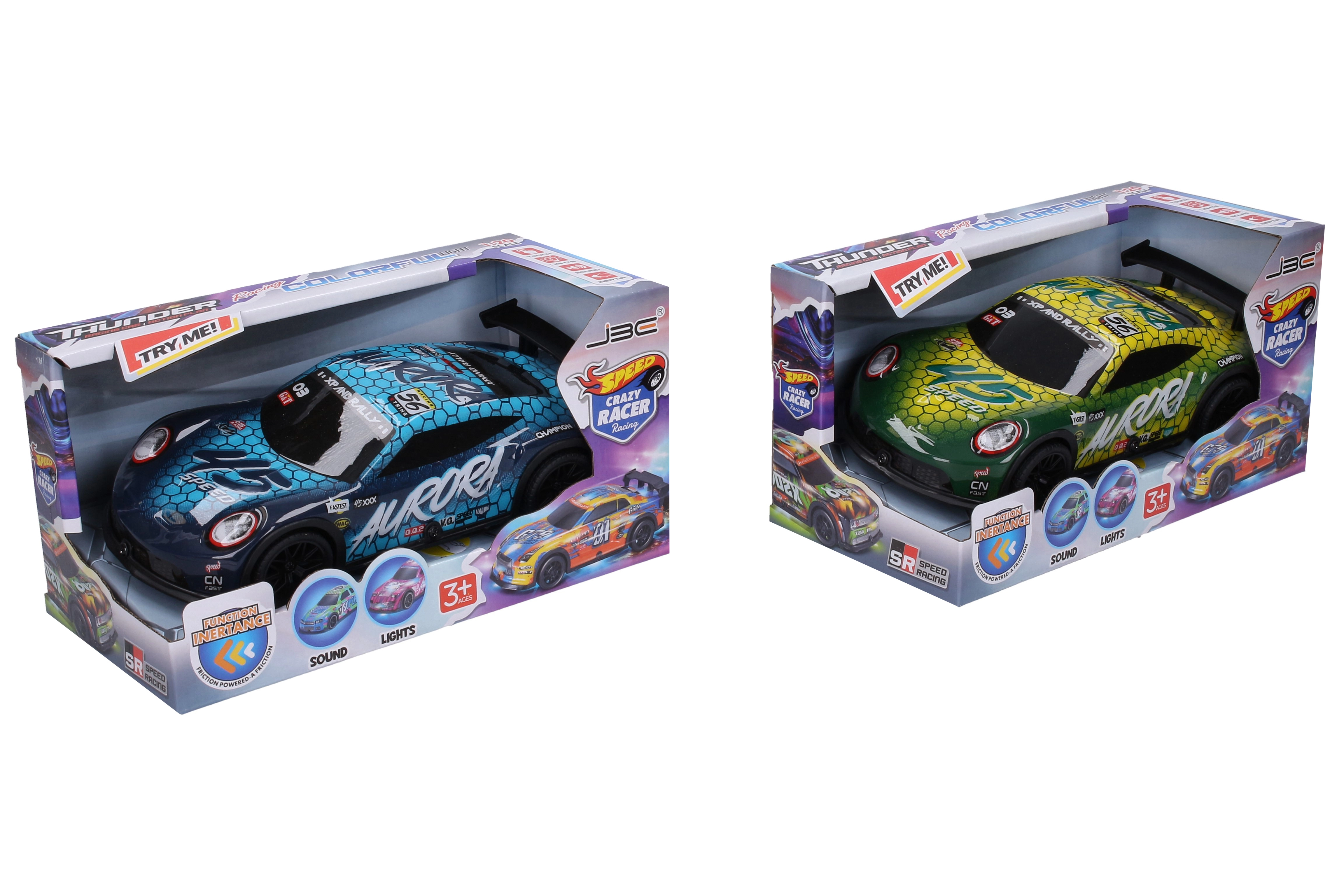 Ovaj trkaći auto pruža djeci puno akcije i zabave. Zahvaljujući inercijskom pogonu dovoljno je auto povući i pustiti – sam će krenuti naprijed bez potrebe za motorićem na baterije. Svjetlosni i zvučni efekti aktiviraju se jednostavnim pritiskom na haubu, što potiče interaktivnu igru.