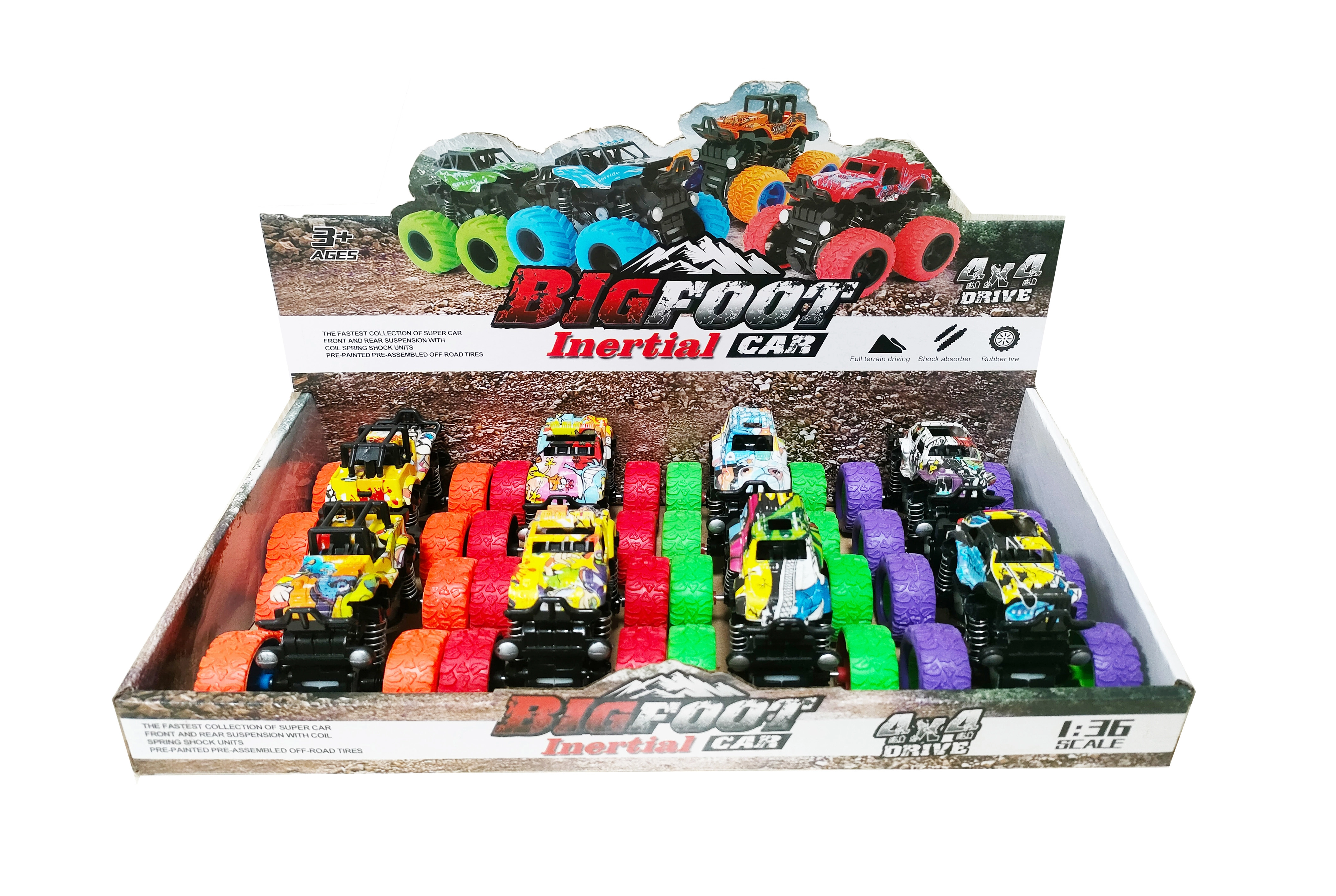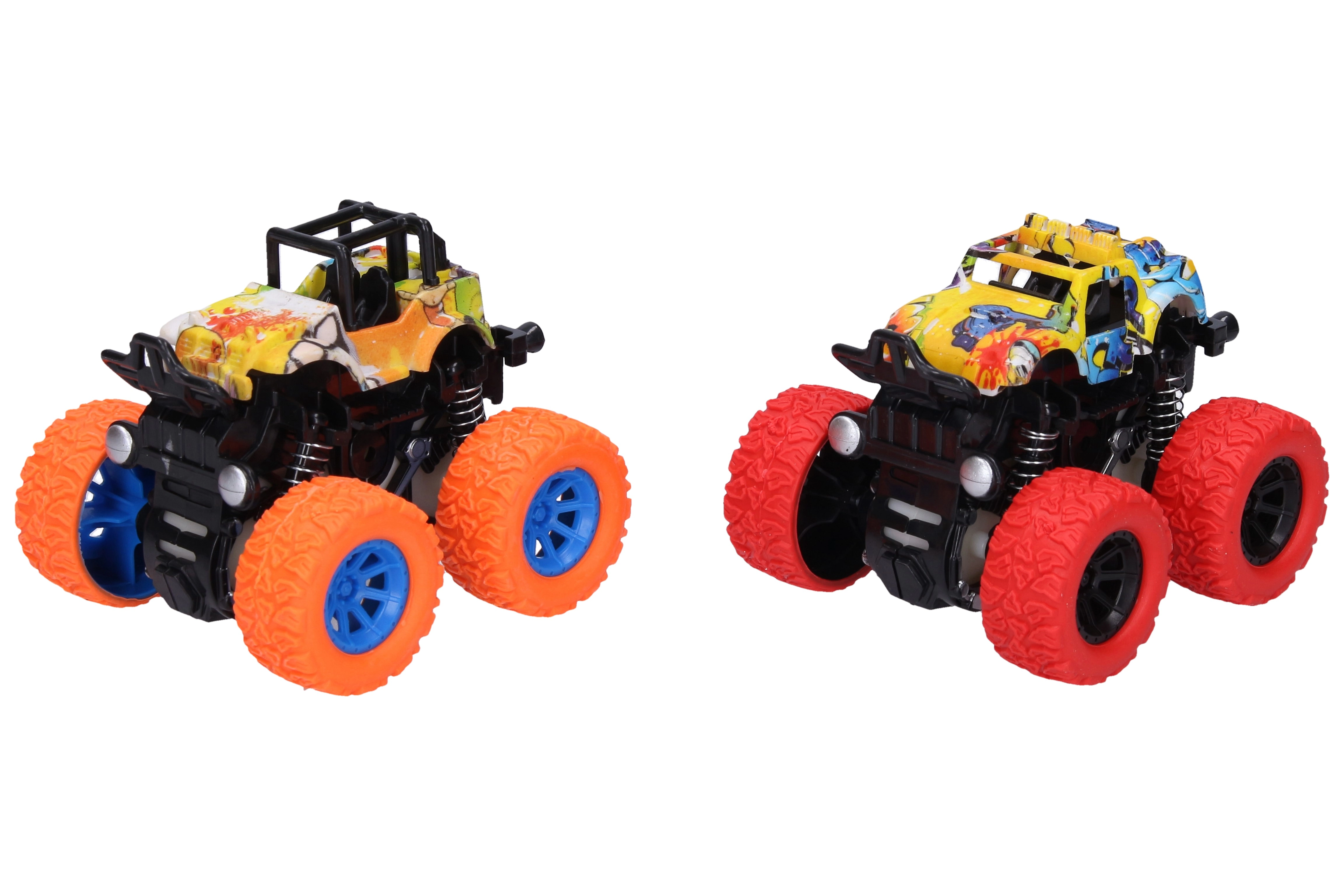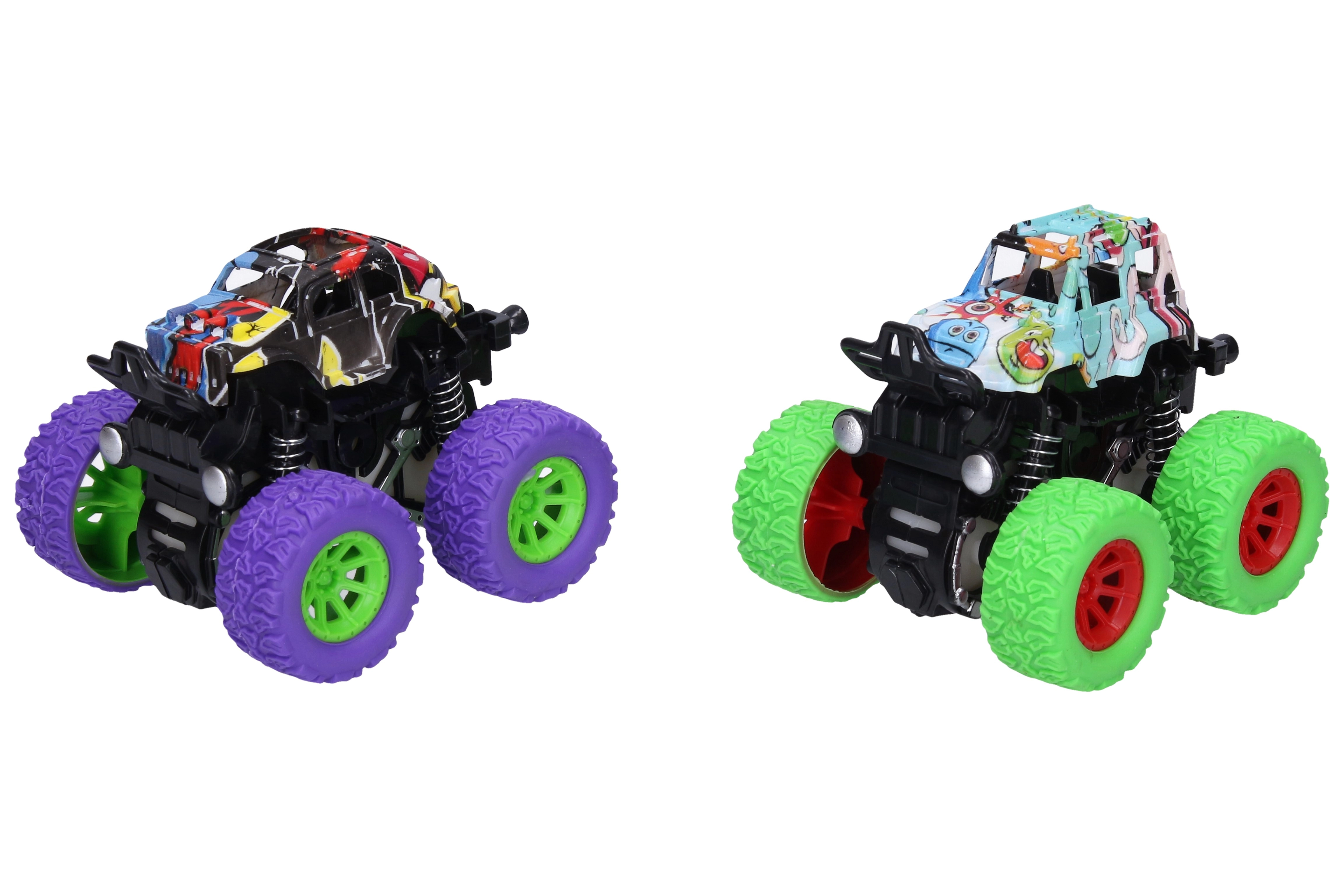 Ovi terenci veličine oko 9 cm s frikcijskim pogonom (inercija) dovoljno je nategnuti i pustiti – jure naprijed velikom brzinom. Stilizirane karoserije s graffiti motivima u raznim bojama privlače pozornost i potiču kreativnu igru.