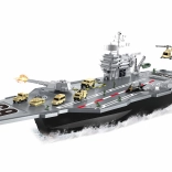 Veliki nosač zrakoplova s bogatom opremom za akcijsku igru. Sadrži 5 vozila s slobodnim kotačima, helikopter, 3 lovca, čamac i figure vojnika. Idealno za djecu koja vole vojne i zrakoplovne scene. Dimenzije broda 86 × 19 × 21 cm. U pakiranju je ilustrirani priručnik za sastavljanje i korištenje.