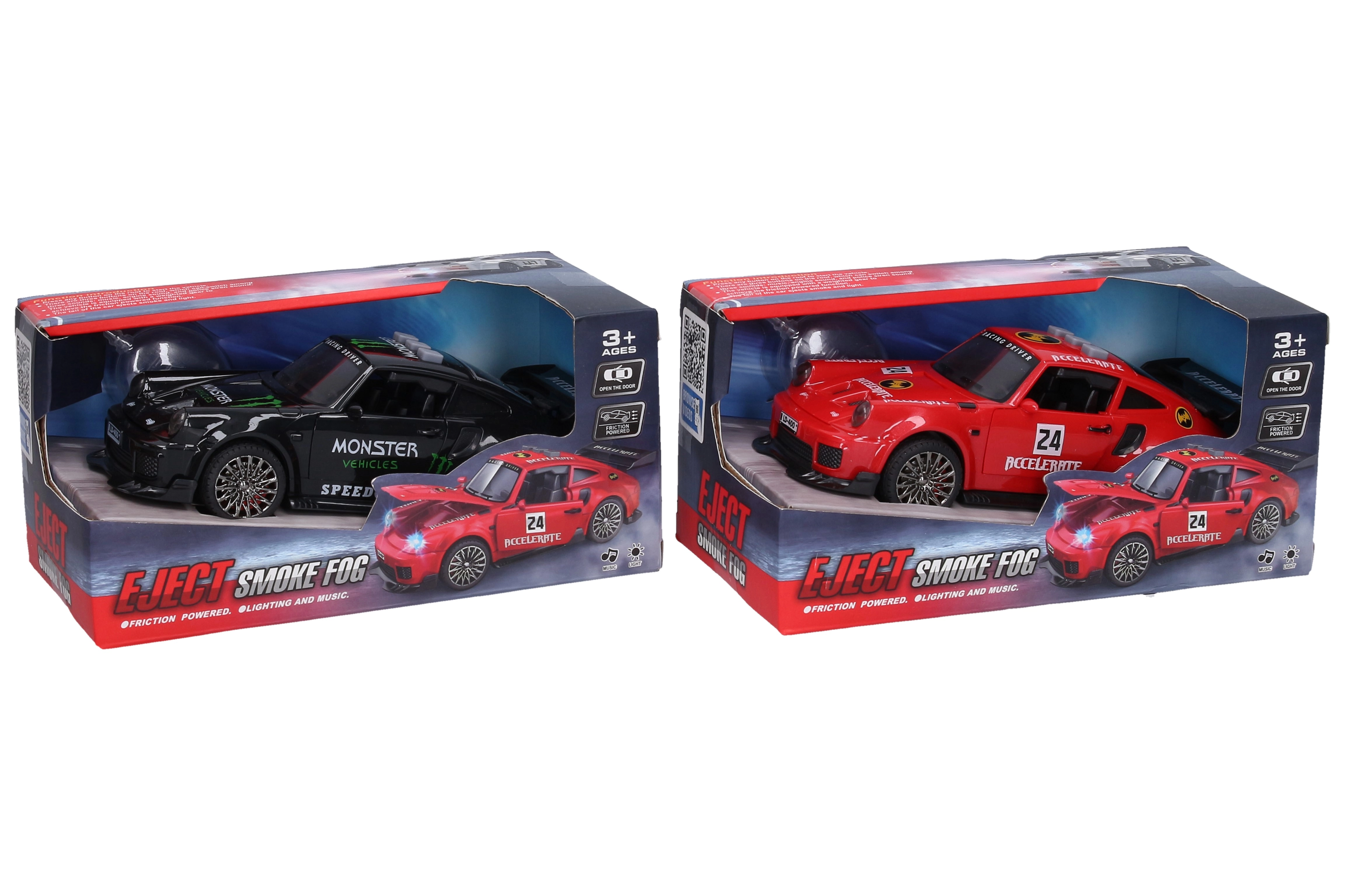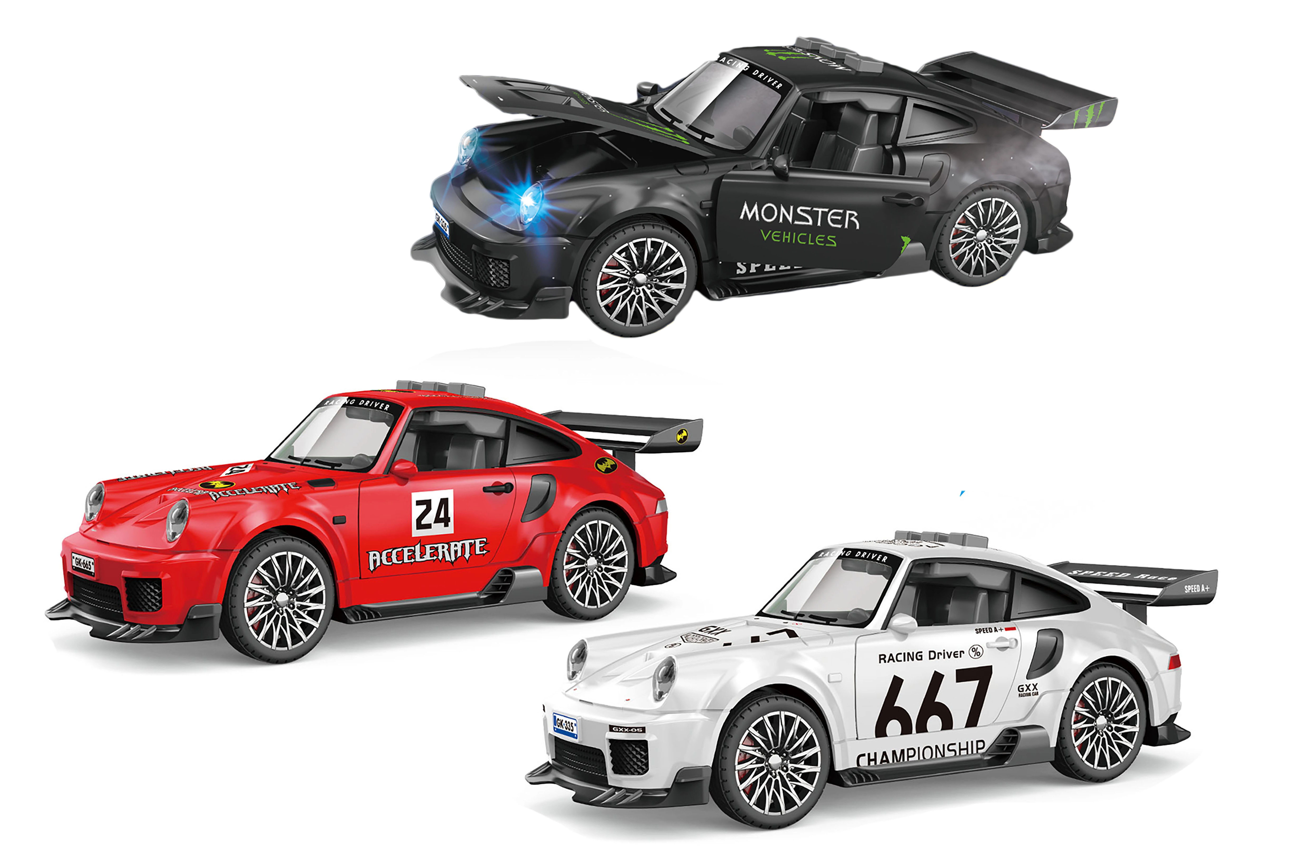 Efekti se lako pokreću gumbima na krovu – odaberite zvuk motora, zvuk sirene ili glazbu. Zahvaljujući praktičnoj veličini, auto je idealan za putovanja i kućne utrke. Dostupan u tri varijante boja: crvena, crna i bijela.