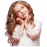 Kreativni set za male šminkerice omogućuje brzo i jednostavno ukrašavanje kose, noktiju, kože i predmeta sjajnim kamenčićima. Zahvaljujući praktičnom uređaju dovoljno je umetnuti traku s kristalićima, prisloniti na odabrano mjesto i jednim pritiskom stvoriti trenutačni sjajni efekt. U pakiranju je 80 kristalića različitih oblika za beskrajne kombinacije.