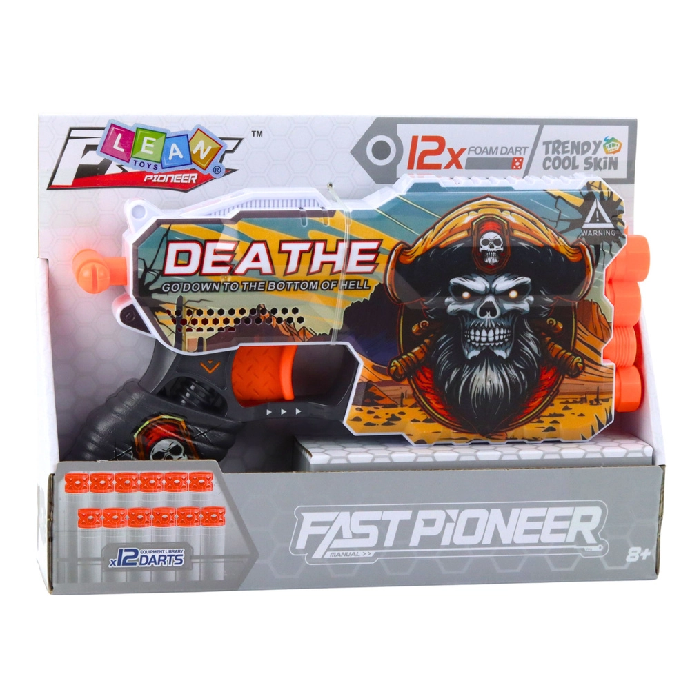 Otkrijte akcijsku zabavu s piratskim pištoljem za pjenaste strelice koji spaja sigurnost, jednostavno rukovanje i atraktivan izgled. Zahvaljujući kompaktnim dimenzijama odlično leži u dječjoj ruci i idealan je za igru u dvorištu i dječjoj sobi.
