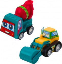 Ovaj šareni set donosi djeci beskrajne mogućnosti igre: nagibni kiper, vrijedna miješalica, akcijski bager, izdržljivi buldožer i druge mašine za male graditelje. Zahvaljujući pull-back pogonu dovoljno je autić povući unazad i pustiti – sam kreće naprijed.