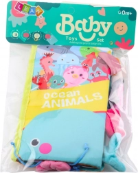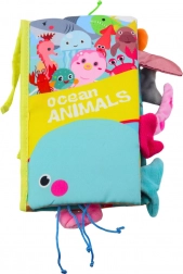 Ova sigurna i nježna tekstilna knjižica donosi bebama od prvih mjeseci života šarene ilustracije morskih životinja – primjerice kita, tuljana ili meduze. Izbočeni “repići” od različitih materijala mame na dodir i zabavno upoznavanje novih struktura, što prirodno potiče osjet dodira i znatiželju.