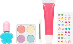 Kozmetički proizvodi osmišljeni su za osjetljivu dječju kožu – dermatološki testirani, sigurni i ne iritiraju. Lak za nokte stvara slupivu (peel-off) sloj za lako uklanjanje, a sjenila za oči se lako ispiru toplom vodom i sapunom. Cijeli set je 100% veganski i cruelty-free.