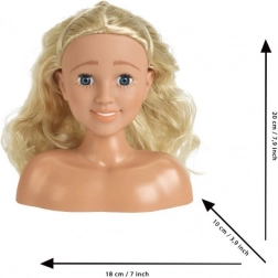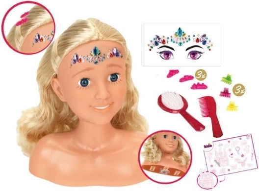 Glava za češljanje i stiliziranje Sara savršen je izbor za male frizerke i vizažistice. Realistična duga plava kosa lako se raščešljava i drži oblik, pa djeca mogu stvarati pletenice, valove i svečane punđe. Glatko lice idealno je za sigurno ukrašavanje priloženim samoljepljivim kamenčićima i dermatološki testiranim „kozmetičkim srcem“.