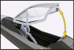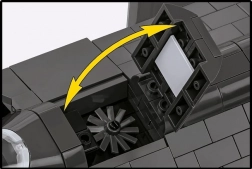 - Otvoriva kabina, pokretni upravljački elementi, otvoriv prostor za bombe, gumeni kotači koji se kotrljaju
