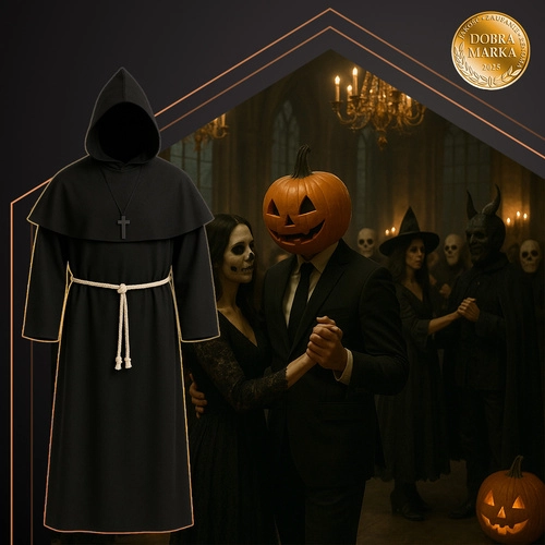 Uronite u tajanstvenu atmosferu srednjeg vijeka s kostimom redovnika RUHHY. Duga tamna tunika sa širokim rukavima, odvojena kapuljača i upečatljiv križ stvaraju autentičan i dojmljiv izgled koji privlači pažnju na prvi pogled. Širok i udoban kroj omogućuje slobodu kretanja tijekom cijele večeri.